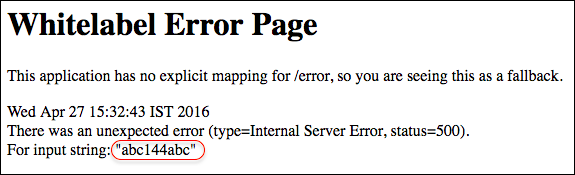 So this meant that any Whitelabel Error Page which reflected user input was vulnerable to it. This was because user input was being treated in as Springs Expression Language (SpEL). So during my pentest I had come across a particualr URL which triggered this Whitelabel Error page.
