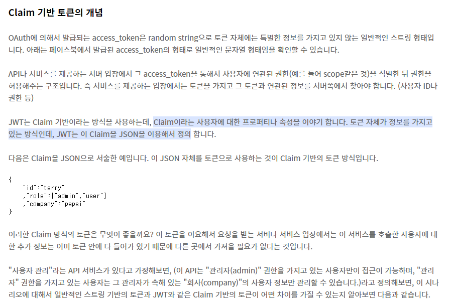 그래서 클레임 토큰이라 하면 토큰 안에 저런 정보를 담고 있는 토큰이라 생각하면 된다.
