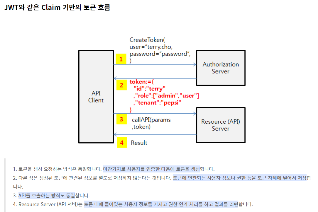 이런 클레임을 기반한 토큰 중 가장 대표적인 것이 바로 JWT다.