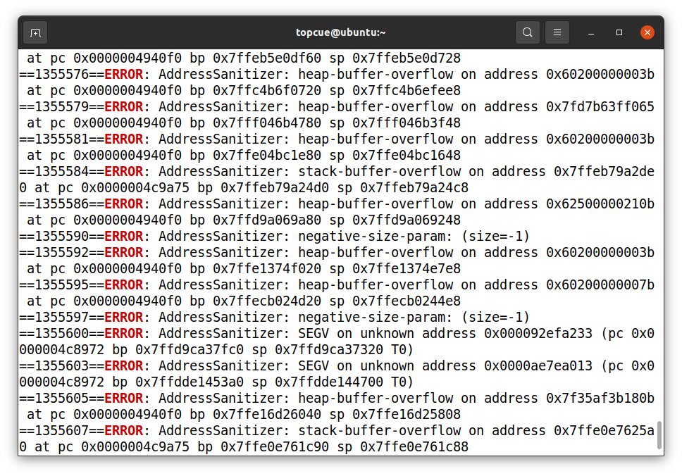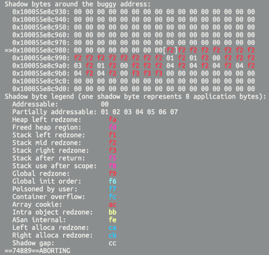 아래와 같이 grep을 이용해 ASAN이 분류해 준 취약점 원인을 확인할 수 있다.