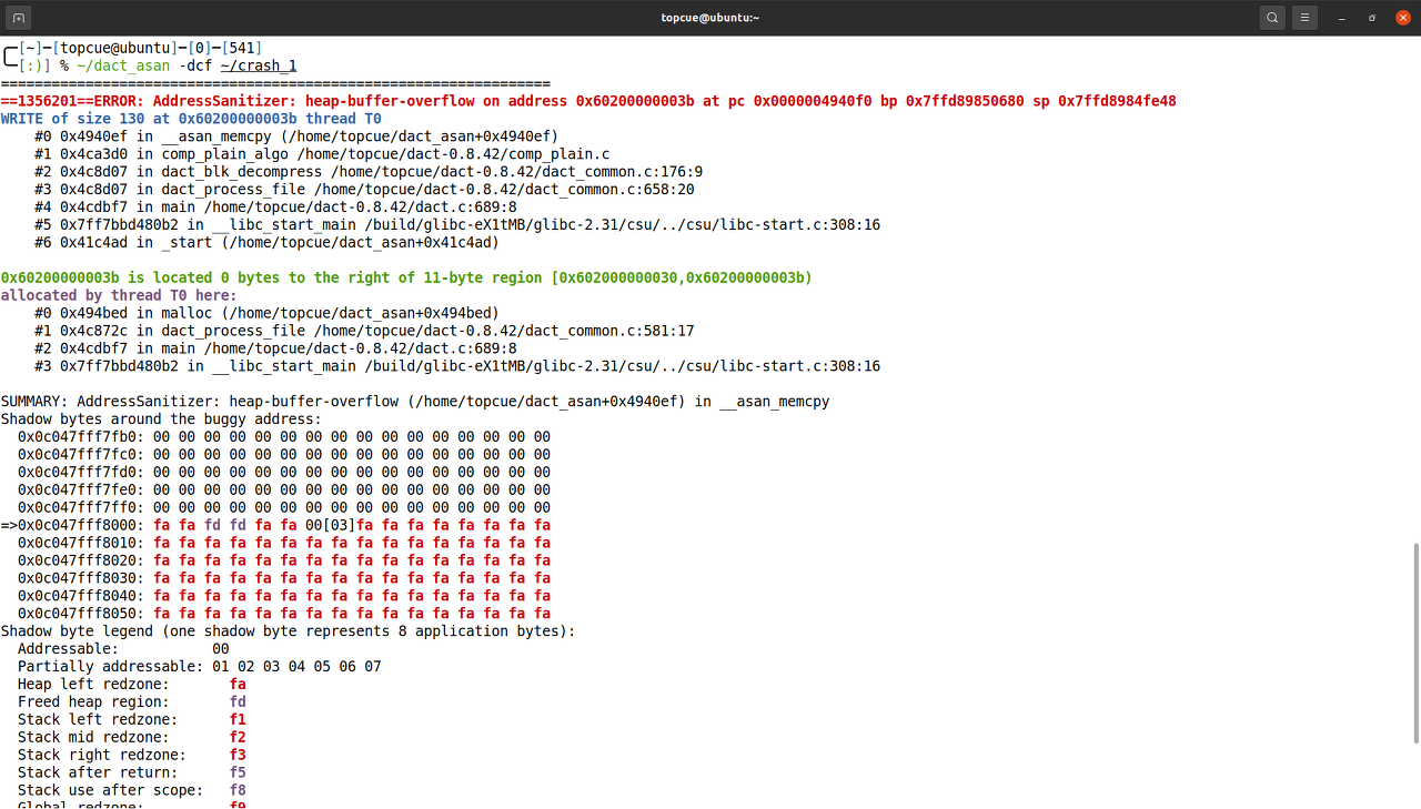 1726 #3 0x41c4ad in _start (/home/topcue/dact_asan+0x41c4ad)