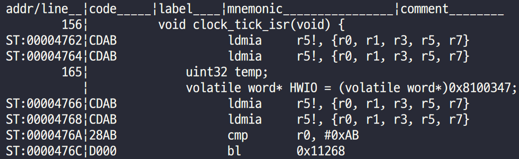 - R14값 0x476A로 이동해보니 역시 clock_tick_ISR()이라는 ISR을 처리하다가 abortion이 발생했다.