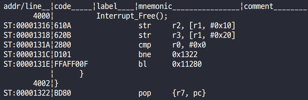 - LR은 bl명령어를 만나 Interrupt_Free()를 수행한 뒤 복귀주소로 0x0000_1323번지를 담고 있었다.