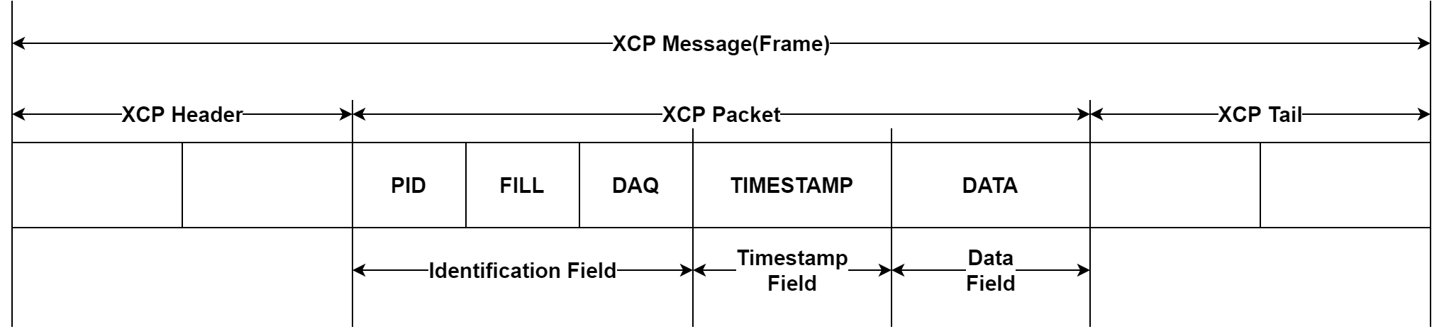 XCP Message Frame 및 각 필드의 의미는 아래와 같다.