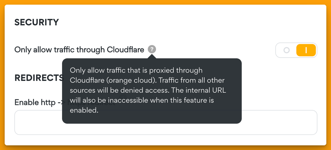 Note: If you use this method, you must ensure that your server is configured only to allow traffic that is coming through Cloudflare. As otherwise, it would be possible to bypass this.