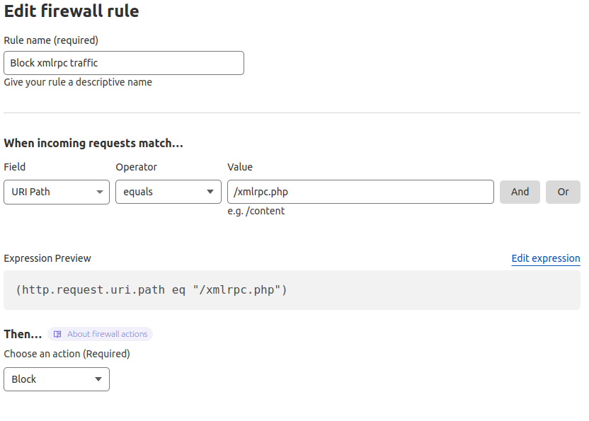 Where this will help is that, like with Accelerated Domains or CDN from Servebolt, the xmlrpc.php traffic from bad actors is stopped at the edge long before it reaches the server.