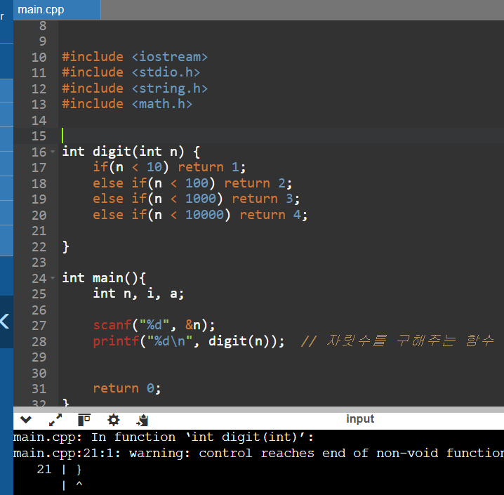 printf("%d\n", digit(n)); // 자릿수를 구해주는 함수
