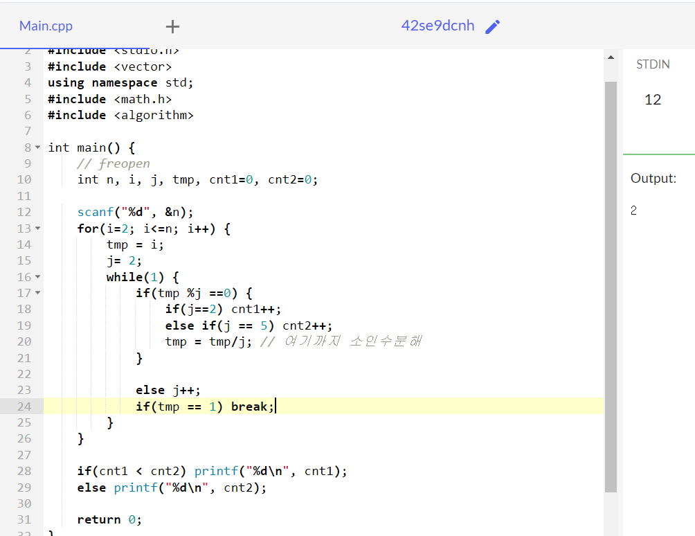 if(cnt1 < cnt2) printf("%d\n", cnt1);