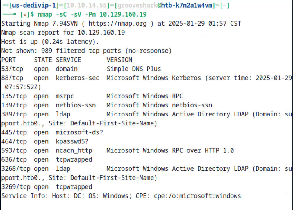 nmap -sC -sV -Pn 10.129.160.19(점검 대상)