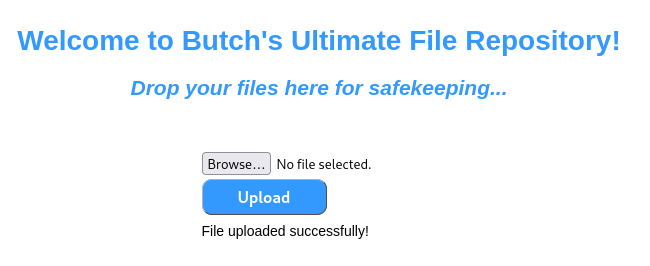 The application included a file upload feature, and since it seemed to function as a repository, I first tested it by uploading a simple TXT file.