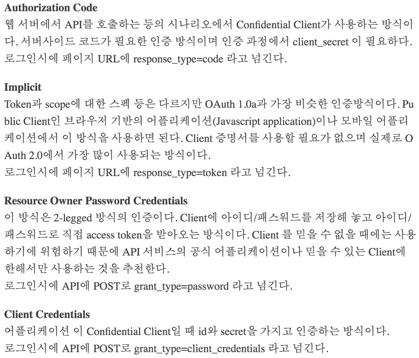 OAuth를 이용해서 권한을 획득하는 방법은 굉장히 다양합니다.