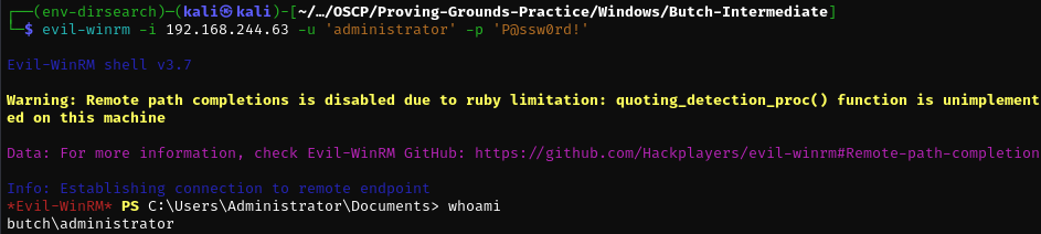 This is my fourteenth writeup in the Proving Grounds series, which is part of my learning roadmap before taking the OSCP exam. This machine is called Butch, categorized as Intermediate, and runs on the Windows operating system.