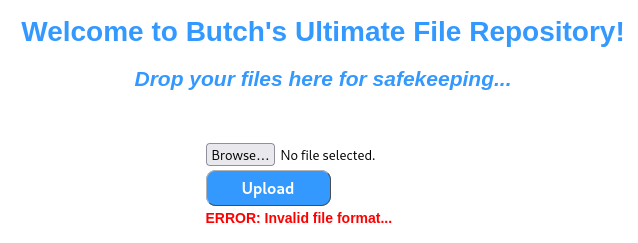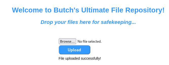 The application included a file upload feature, and since it seemed to function as a repository, I first tested it by uploading a simple TXT file.