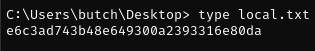 Read local.txt: e6c3ad743b48e649300a2393316e80da