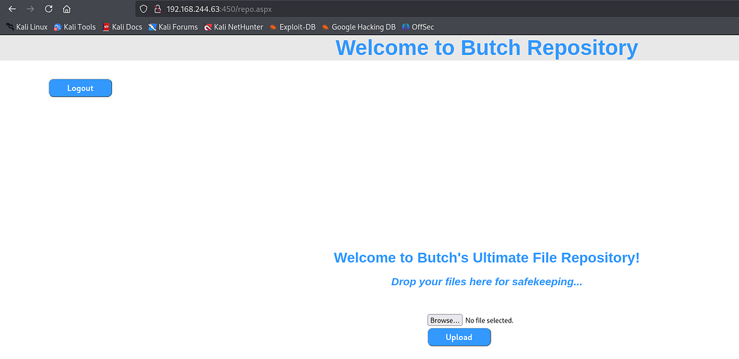Using the credentials obtained earlier — butch:awesomedude — I successfully logged in to the web application.